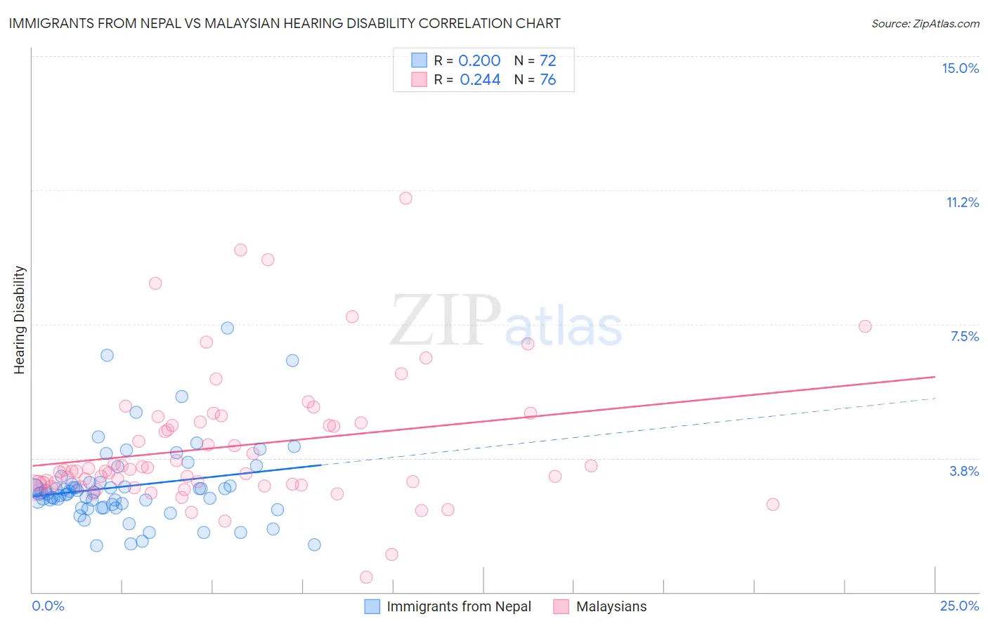 Immigrants from Nepal vs Malaysian Hearing Disability Correlation Chart