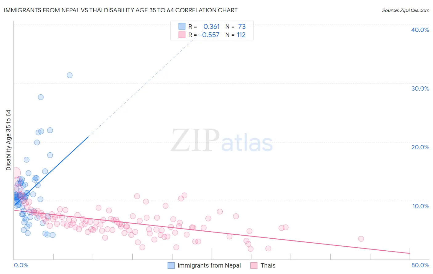 Immigrants from Nepal vs Thai Disability Age 35 to 64 Correlation Chart