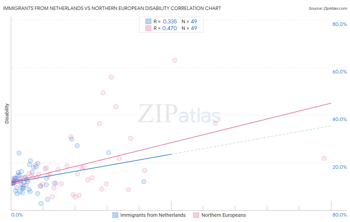 Immigrants from Netherlands vs Northern European Disability Correlation Chart
