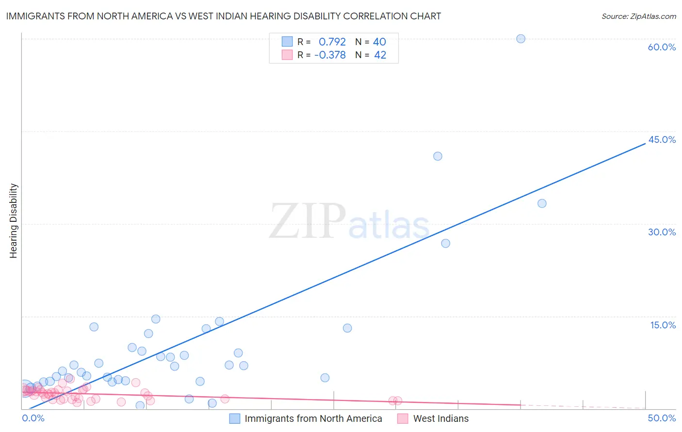 Immigrants from North America vs West Indian Hearing Disability Correlation Chart