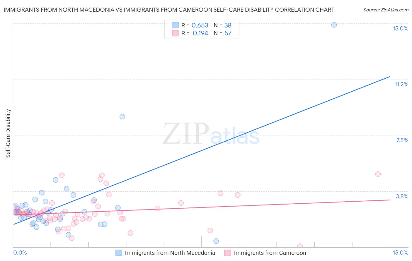 Immigrants from North Macedonia vs Immigrants from Cameroon Self-Care Disability Correlation Chart