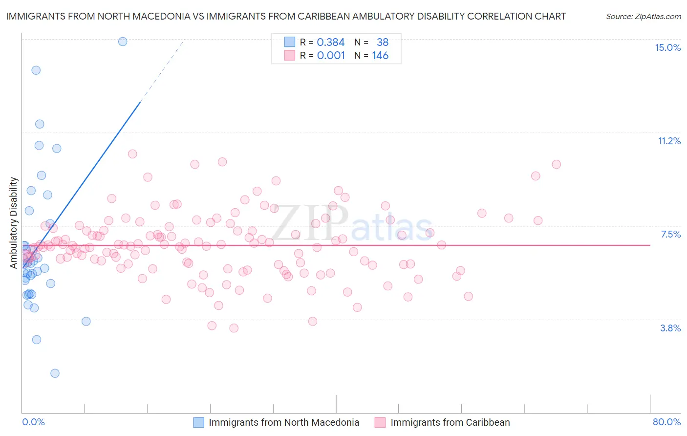 Immigrants from North Macedonia vs Immigrants from Caribbean Ambulatory Disability Correlation Chart
