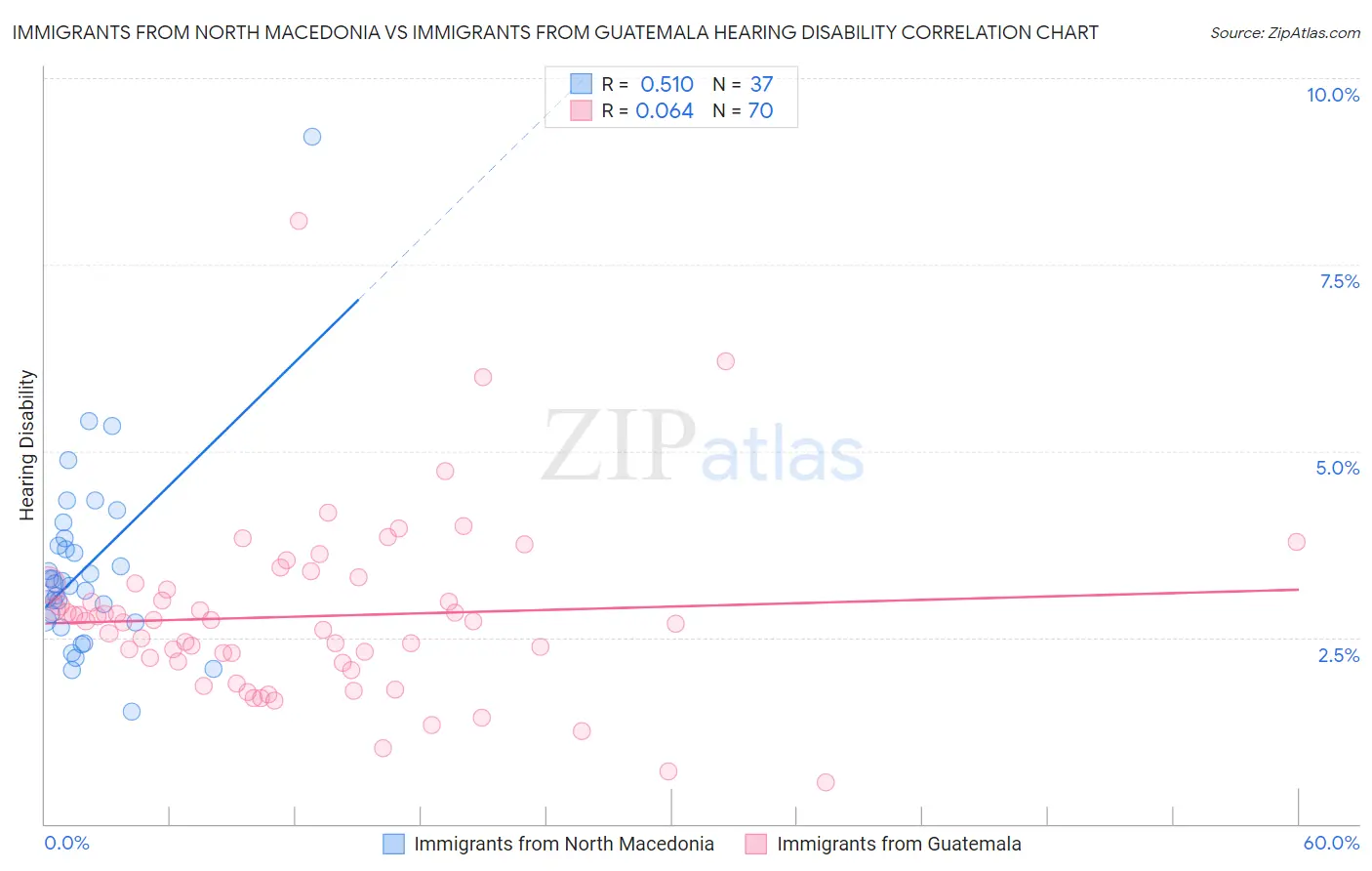 Immigrants from North Macedonia vs Immigrants from Guatemala Hearing Disability Correlation Chart