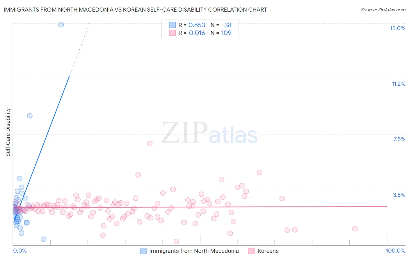 Immigrants from North Macedonia vs Korean Self-Care Disability Correlation Chart