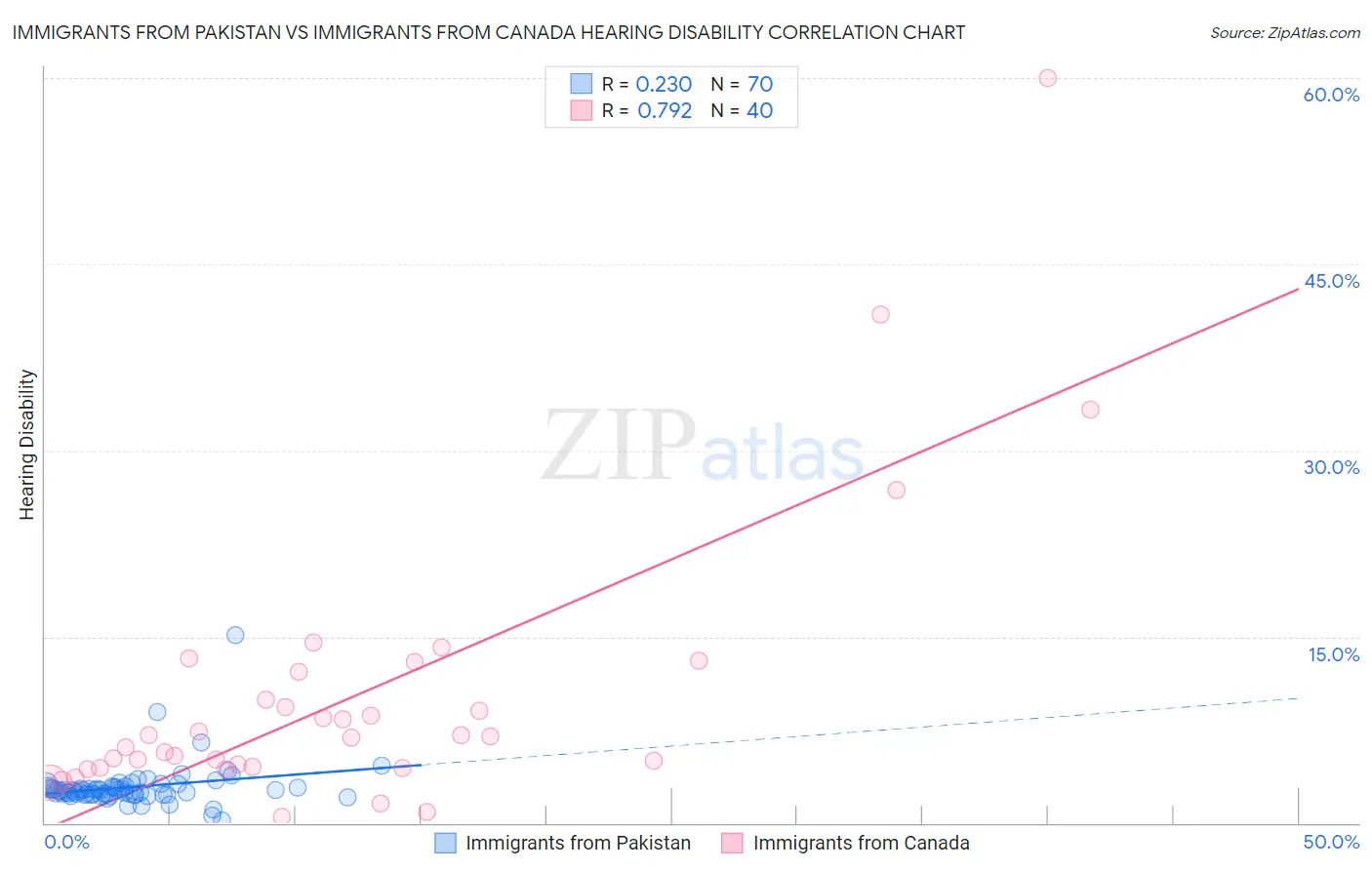 Immigrants from Pakistan vs Immigrants from Canada Hearing Disability Correlation Chart