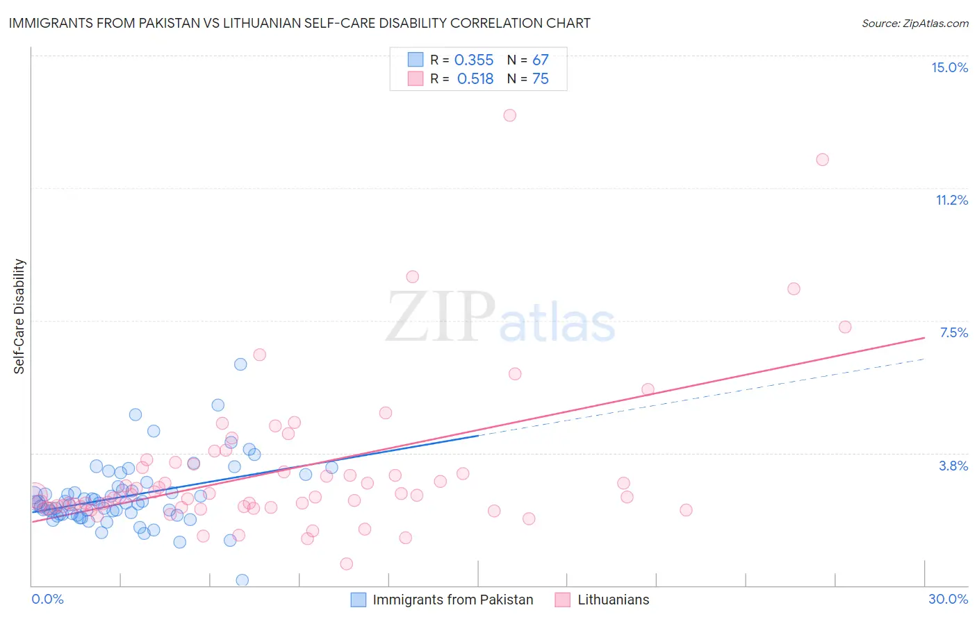 Immigrants from Pakistan vs Lithuanian Self-Care Disability Correlation Chart