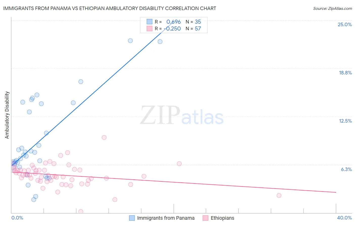 Immigrants from Panama vs Ethiopian Ambulatory Disability Correlation Chart