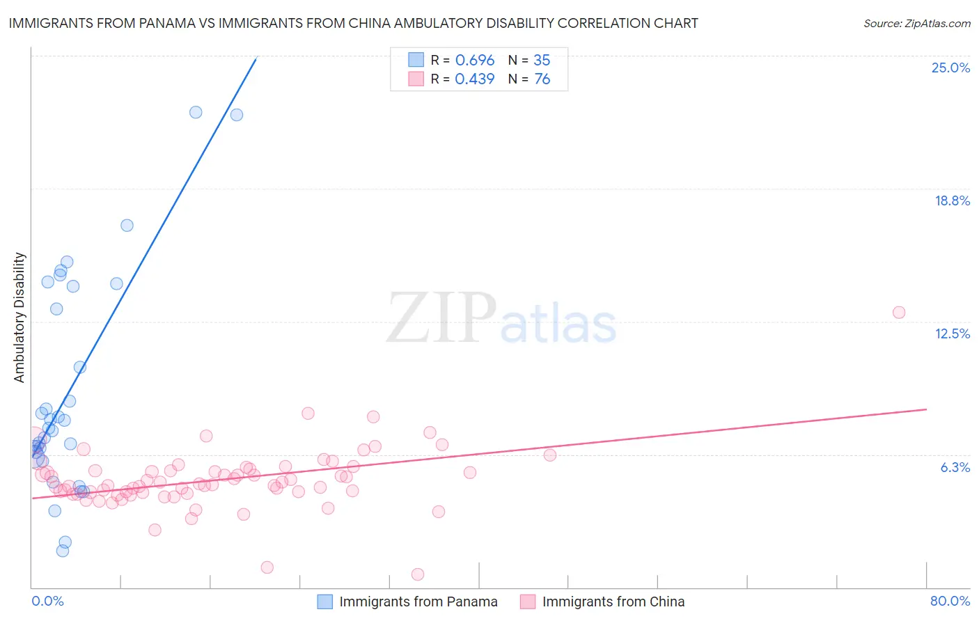 Immigrants from Panama vs Immigrants from China Ambulatory Disability Correlation Chart