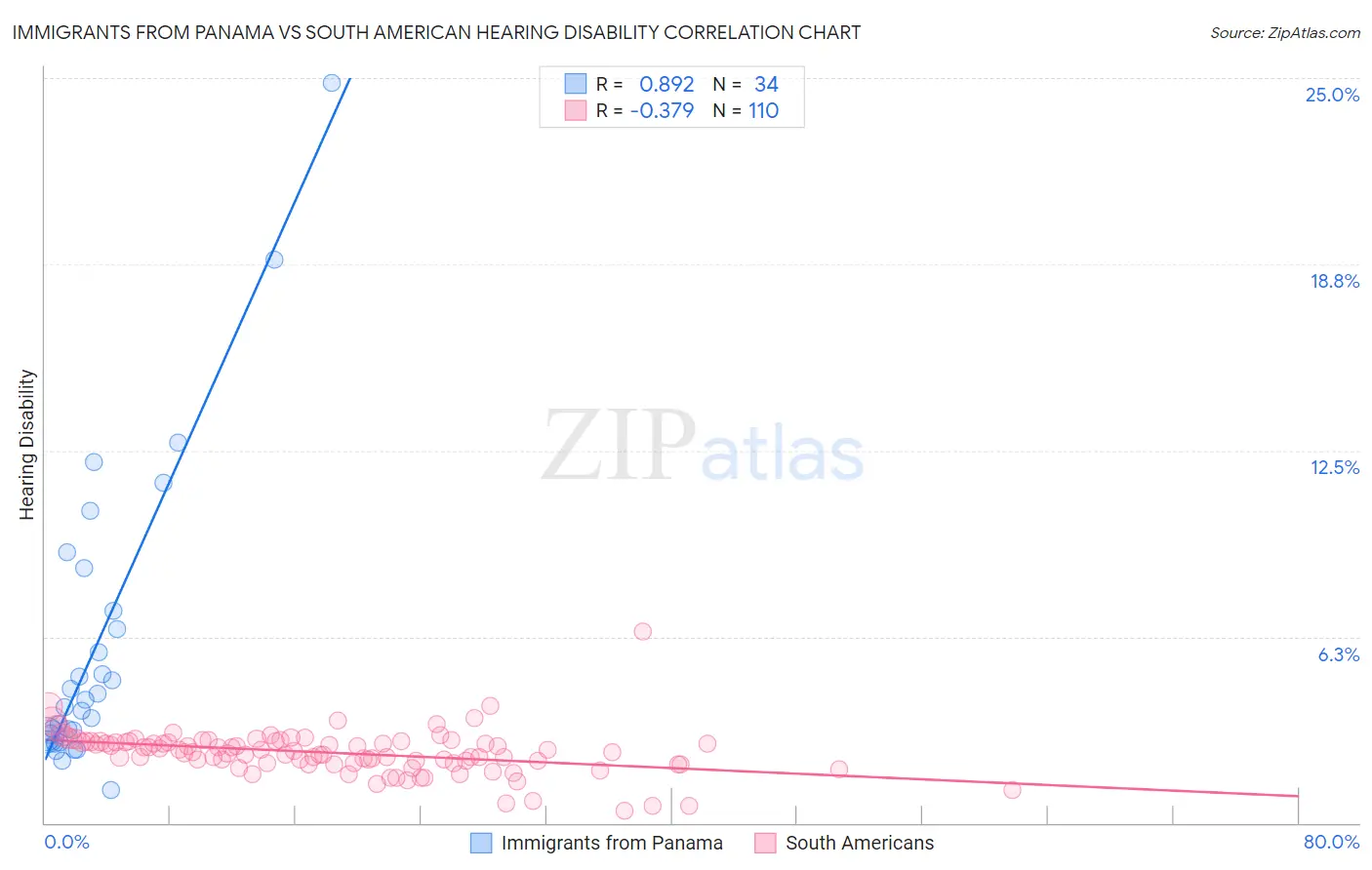Immigrants from Panama vs South American Hearing Disability Correlation Chart