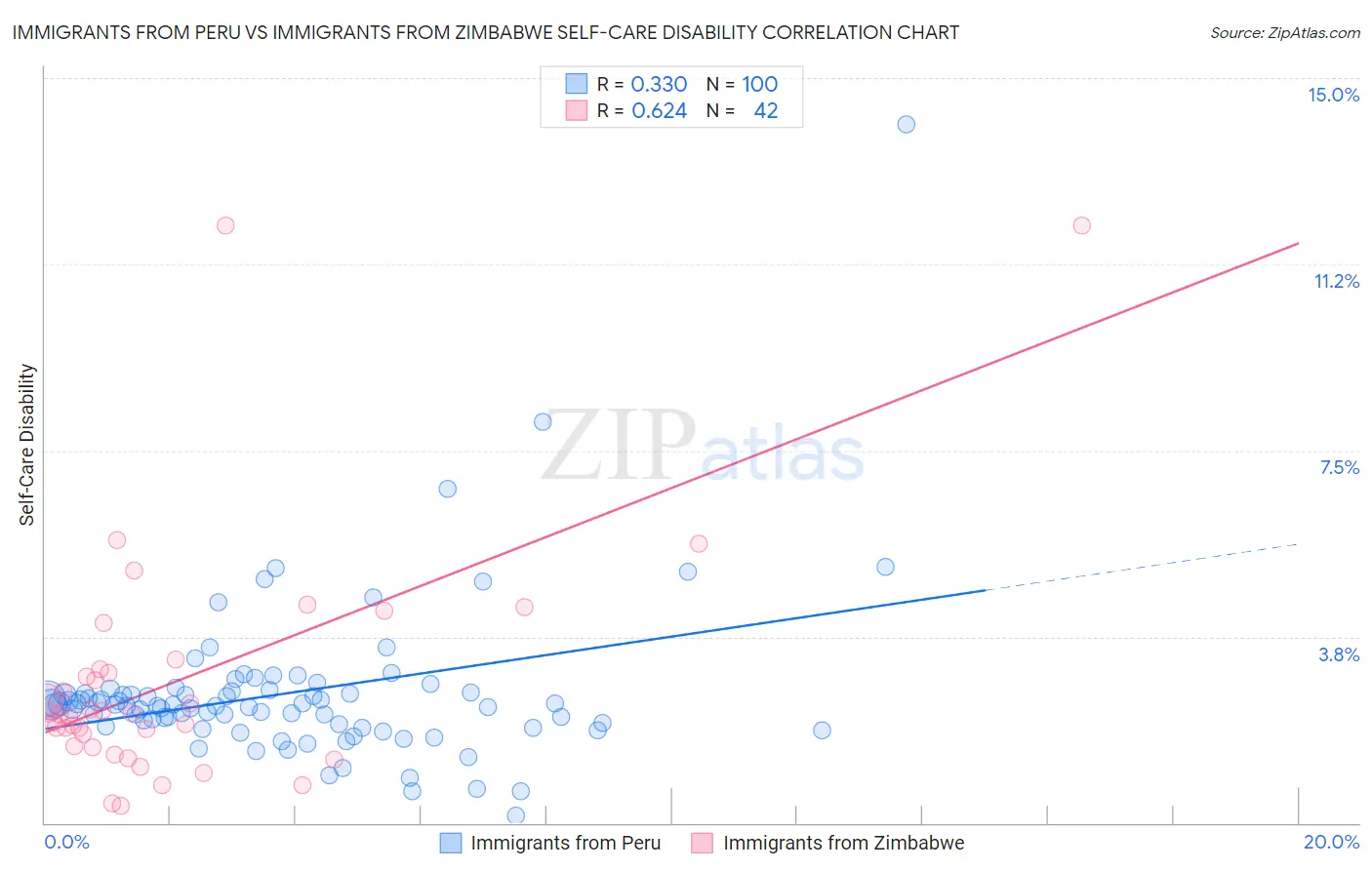 Immigrants from Peru vs Immigrants from Zimbabwe Self-Care Disability Correlation Chart