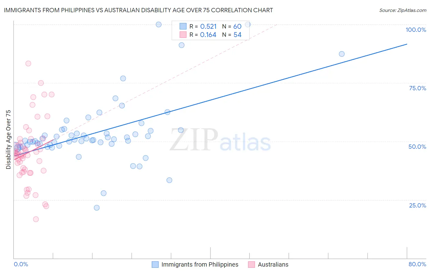 Immigrants from Philippines vs Australian Disability Age Over 75 Correlation Chart