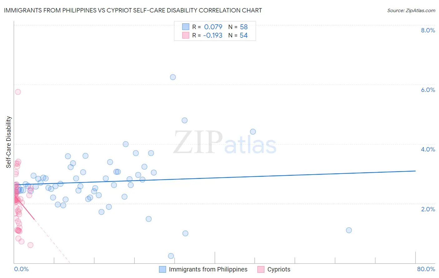Immigrants from Philippines vs Cypriot Self-Care Disability Correlation Chart