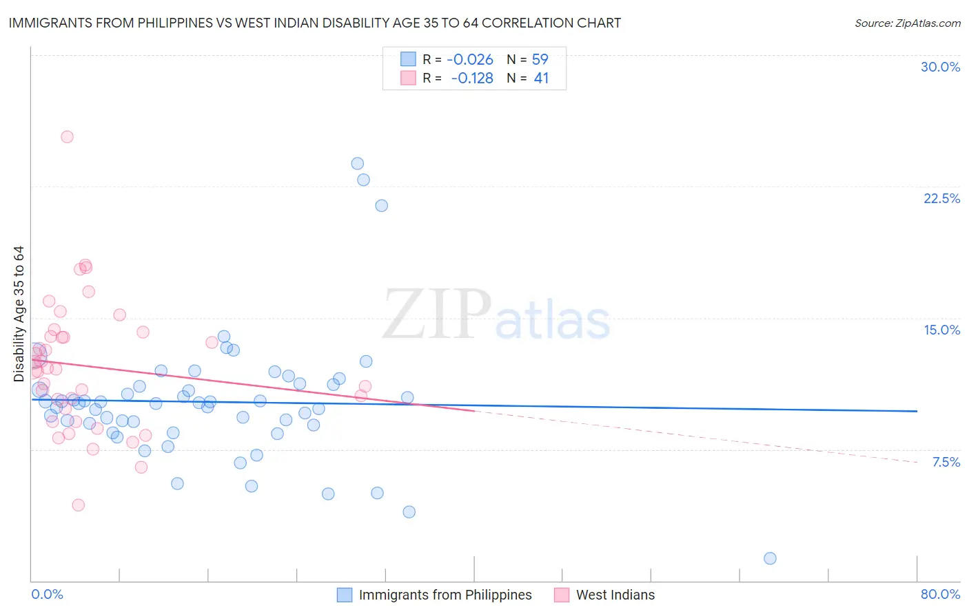 Immigrants from Philippines vs West Indian Disability Age 35 to 64 Correlation Chart
