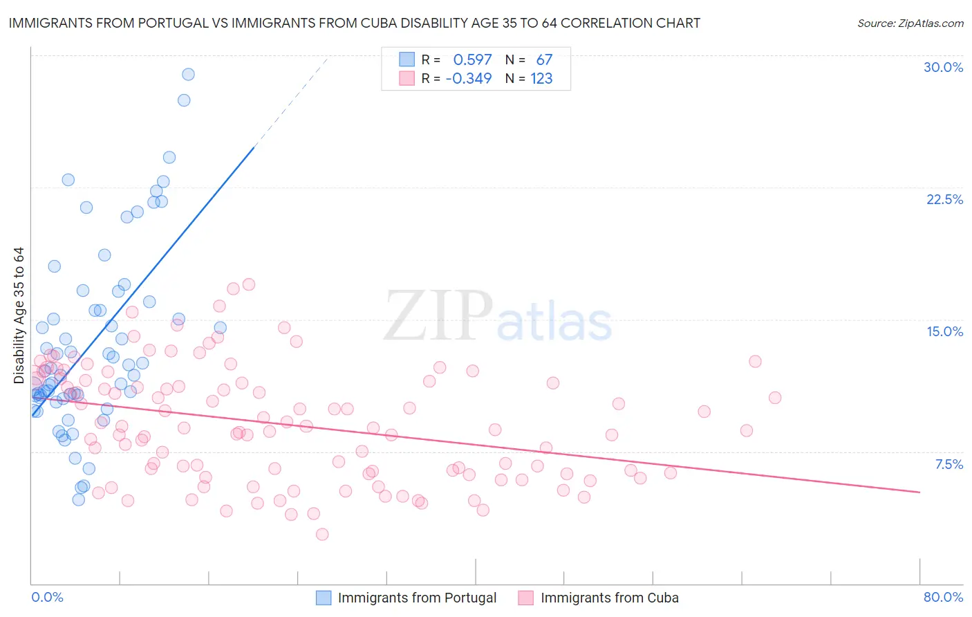 Immigrants from Portugal vs Immigrants from Cuba Disability Age 35 to 64 Correlation Chart