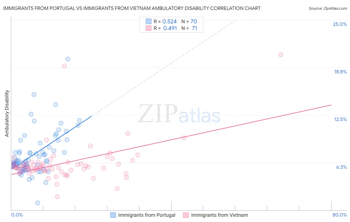 Immigrants from Portugal vs Immigrants from Vietnam Ambulatory Disability Correlation Chart
