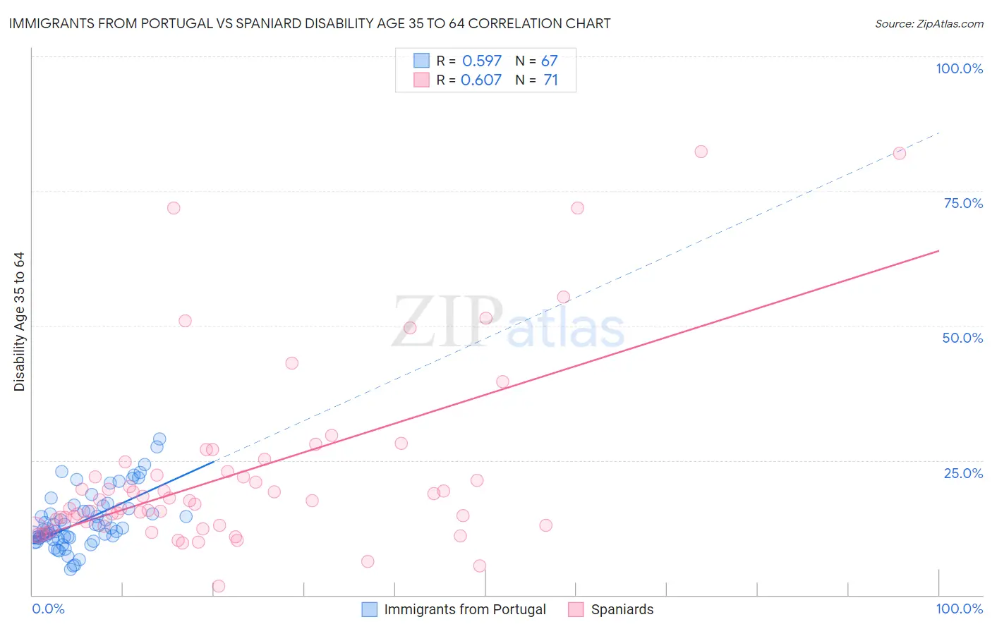 Immigrants from Portugal vs Spaniard Disability Age 35 to 64 Correlation Chart