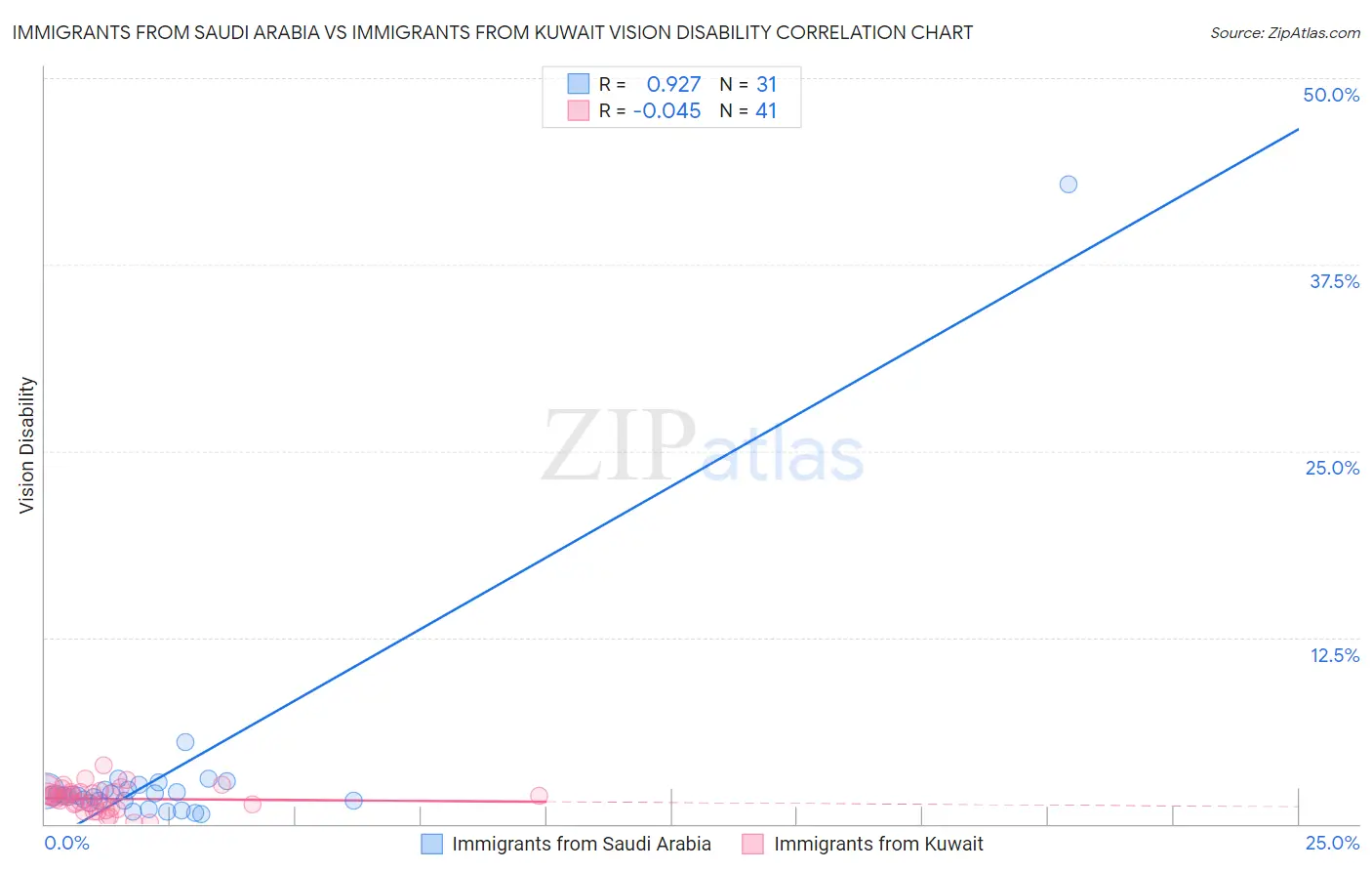 Immigrants from Saudi Arabia vs Immigrants from Kuwait Vision Disability Correlation Chart