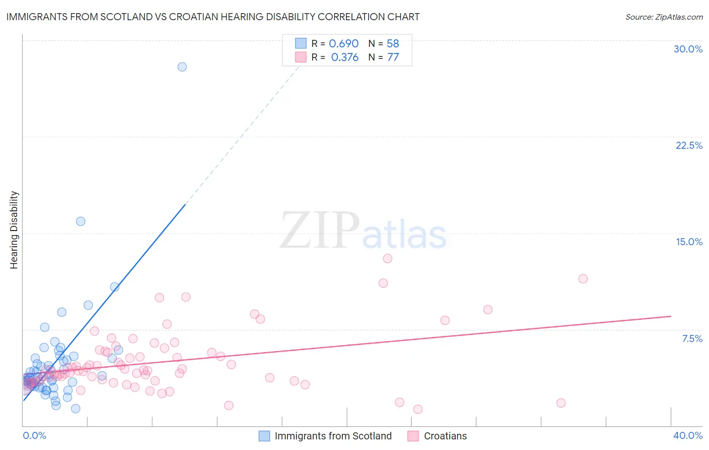 Immigrants from Scotland vs Croatian Hearing Disability Correlation Chart