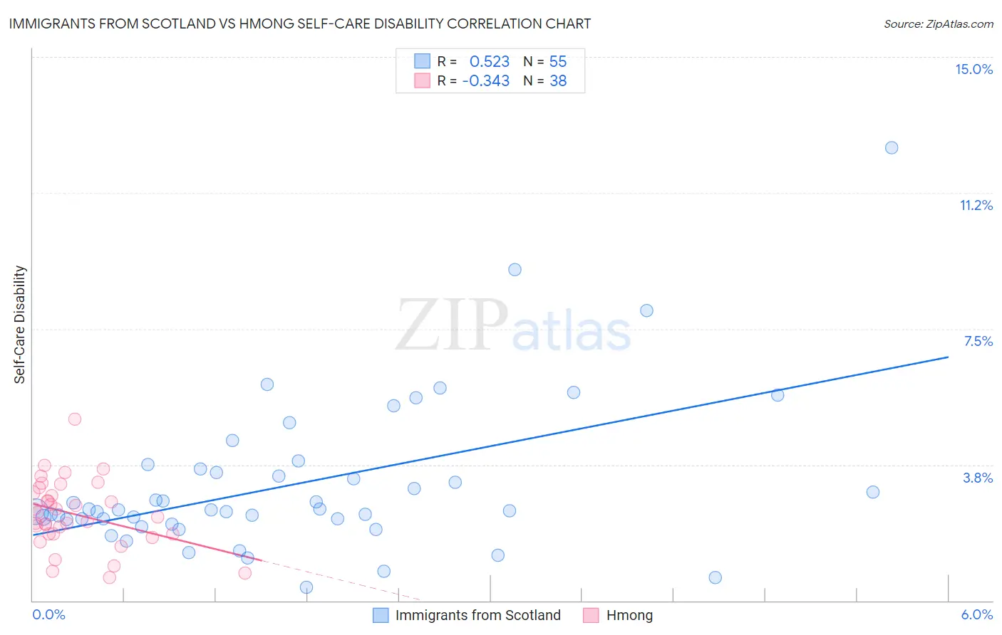 Immigrants from Scotland vs Hmong Self-Care Disability Correlation Chart
