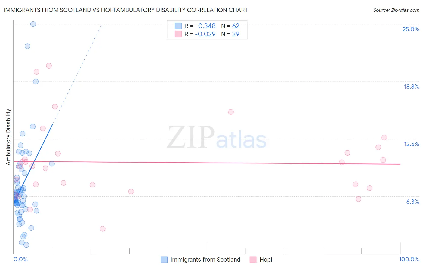 Immigrants from Scotland vs Hopi Ambulatory Disability Correlation Chart