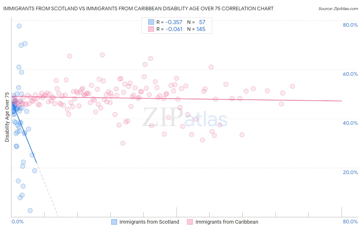 Immigrants from Scotland vs Immigrants from Caribbean Disability Age Over 75 Correlation Chart