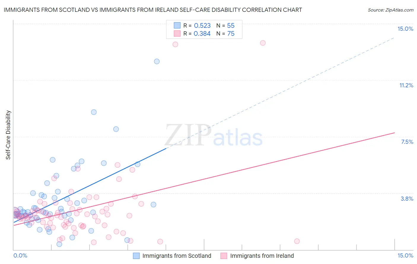 Immigrants from Scotland vs Immigrants from Ireland Self-Care Disability Correlation Chart