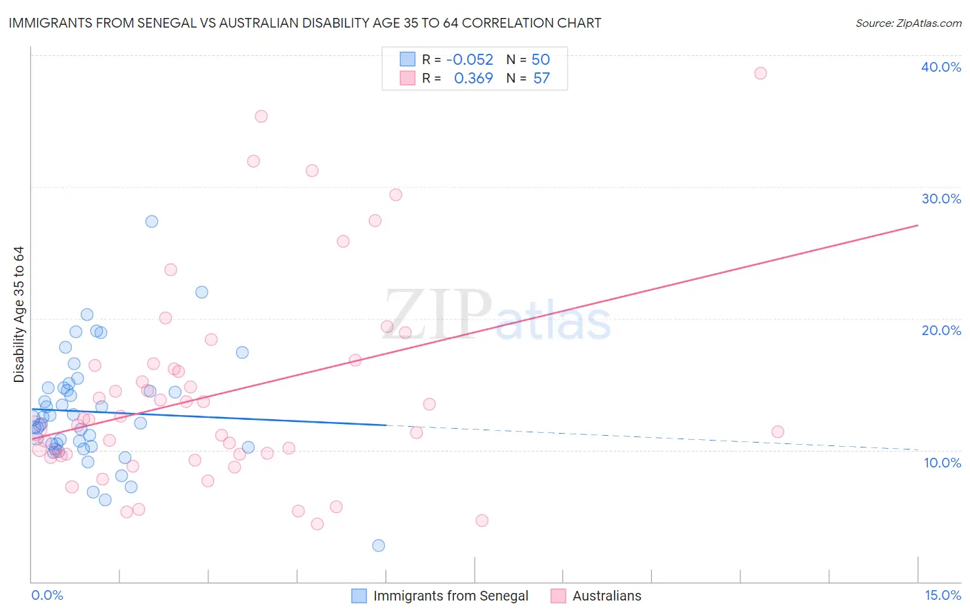 Immigrants from Senegal vs Australian Disability Age 35 to 64 Correlation Chart
