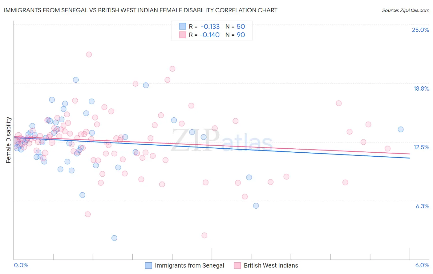 Immigrants from Senegal vs British West Indian Female Disability Correlation Chart