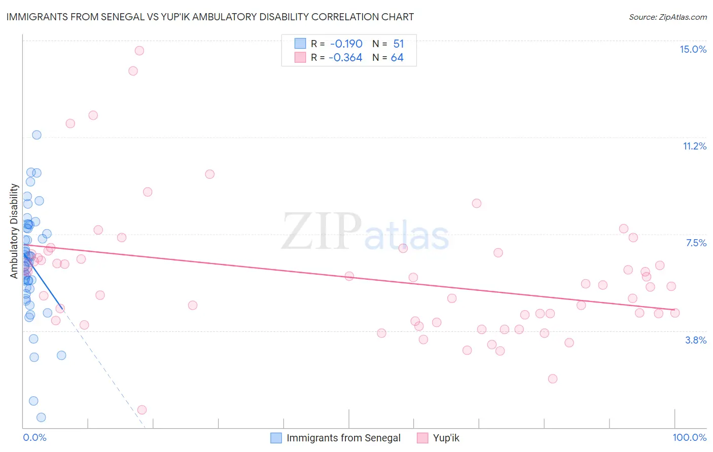 Immigrants from Senegal vs Yup'ik Ambulatory Disability Correlation Chart