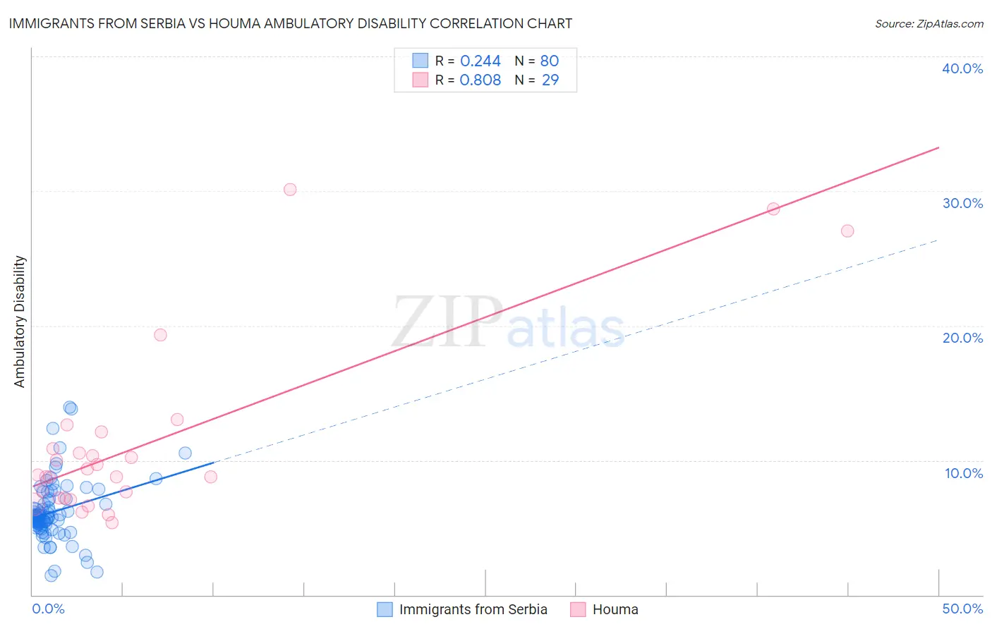 Immigrants from Serbia vs Houma Ambulatory Disability Correlation Chart