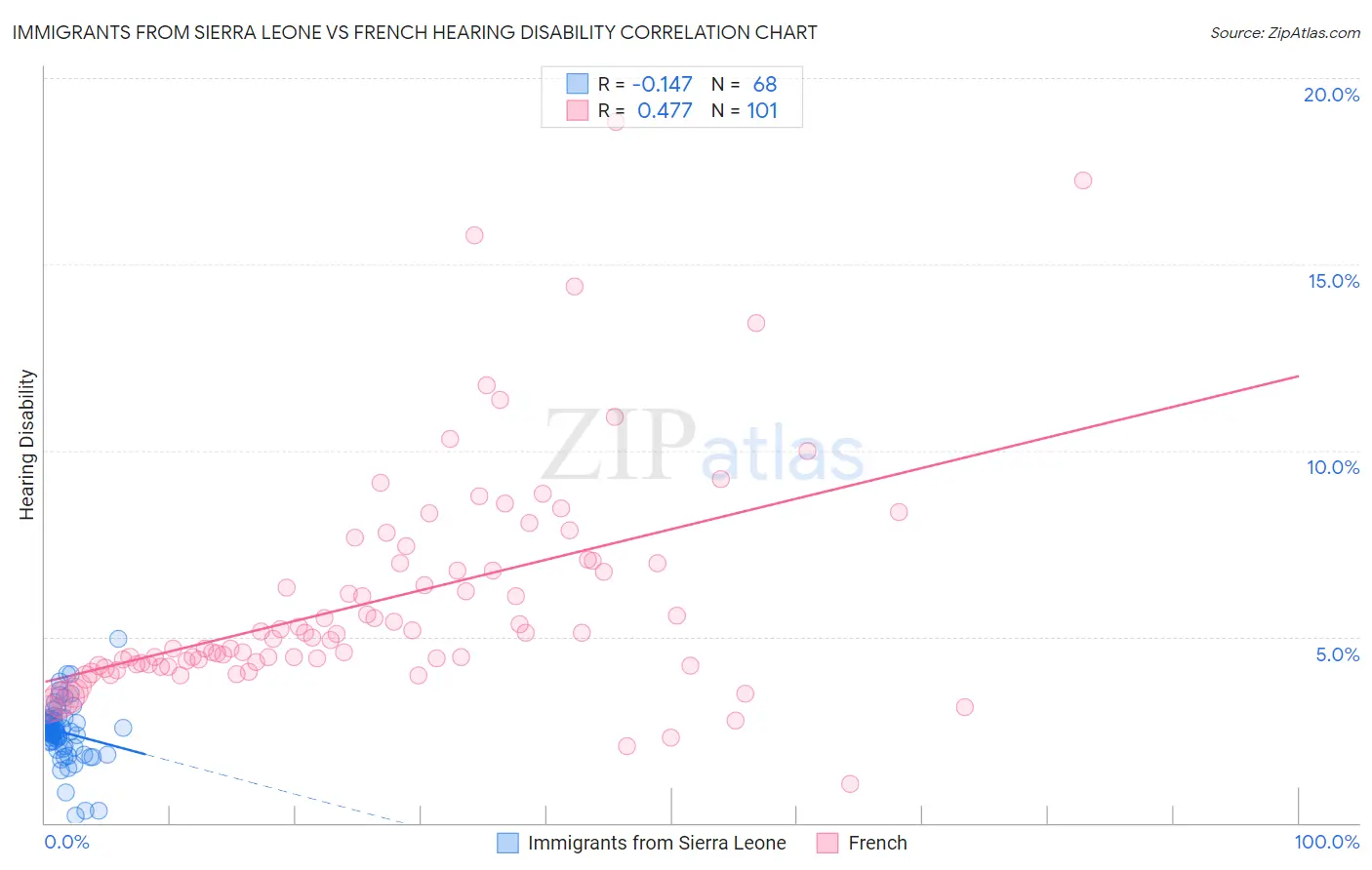 Immigrants from Sierra Leone vs French Hearing Disability Correlation Chart