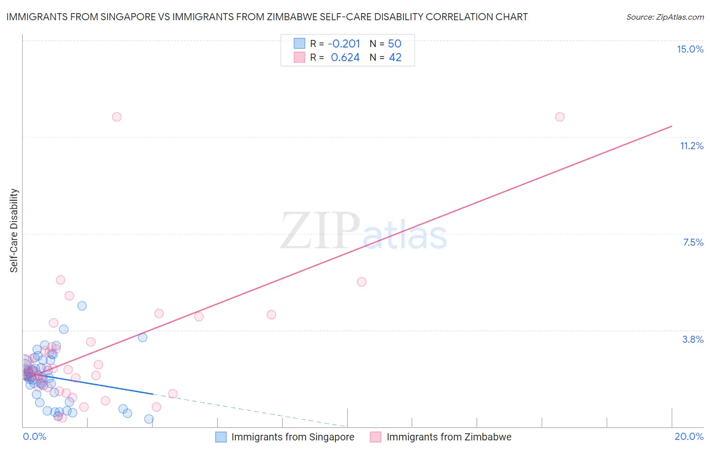 Immigrants from Singapore vs Immigrants from Zimbabwe Self-Care Disability Correlation Chart