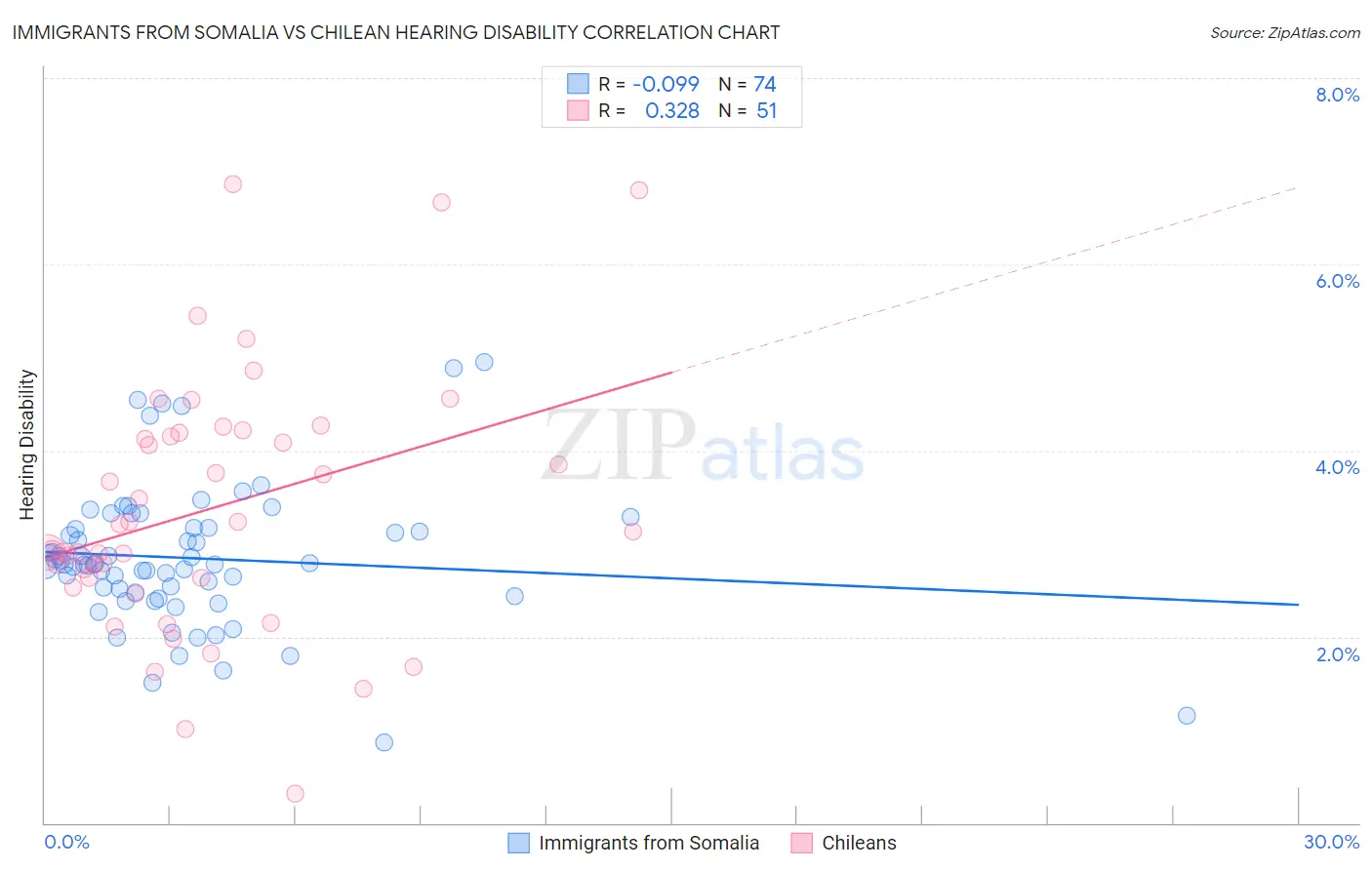 Immigrants from Somalia vs Chilean Hearing Disability Correlation Chart