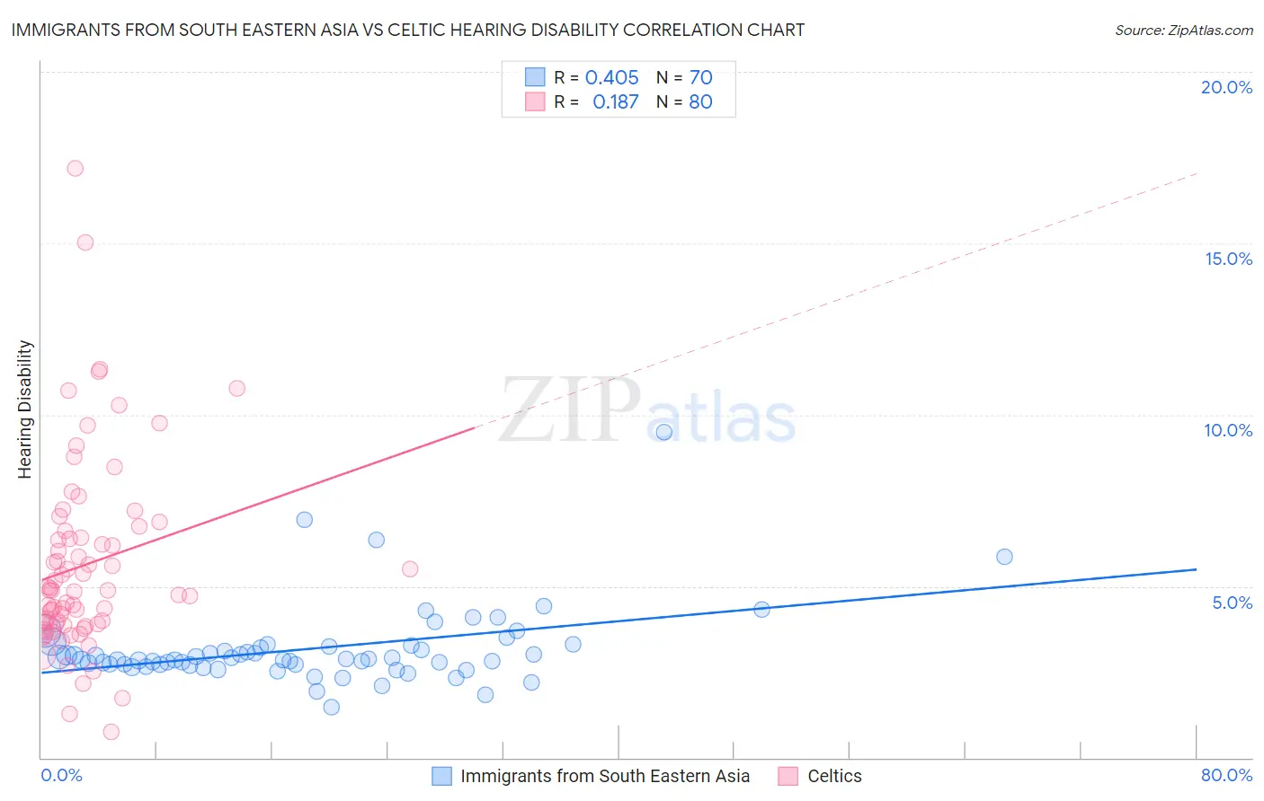 Immigrants from South Eastern Asia vs Celtic Hearing Disability Correlation Chart