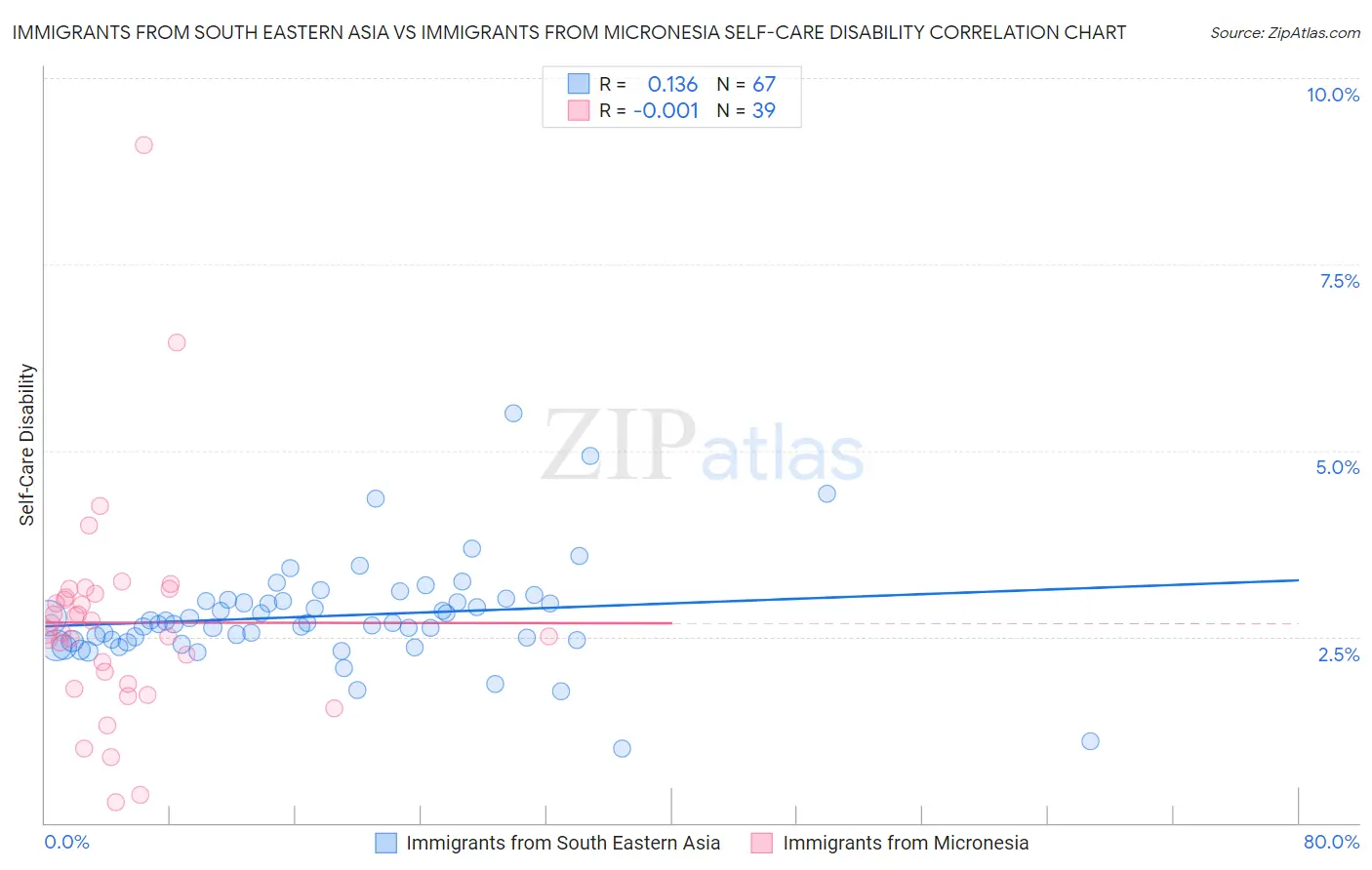 Immigrants from South Eastern Asia vs Immigrants from Micronesia Self-Care Disability Correlation Chart