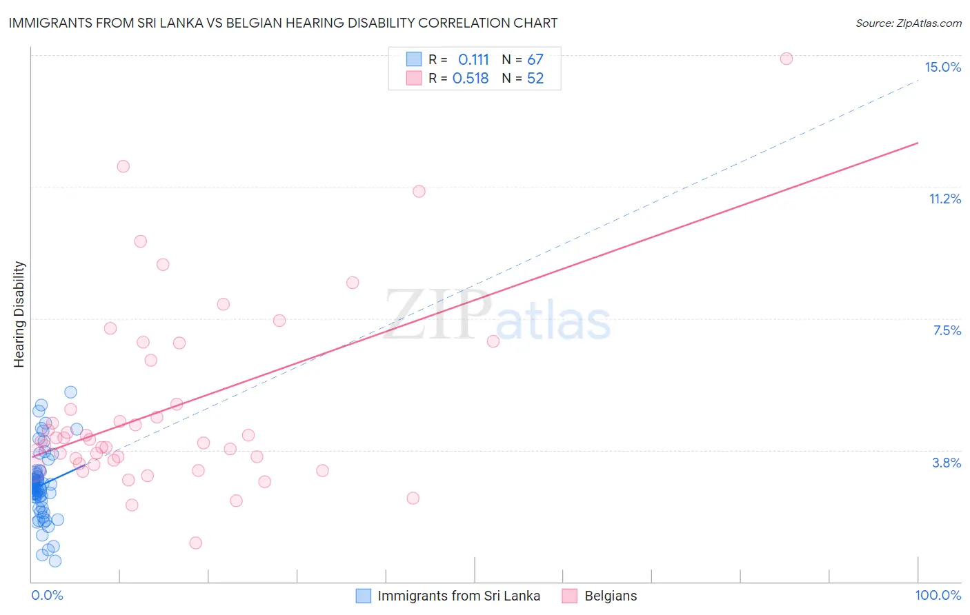 Immigrants from Sri Lanka vs Belgian Hearing Disability Correlation Chart