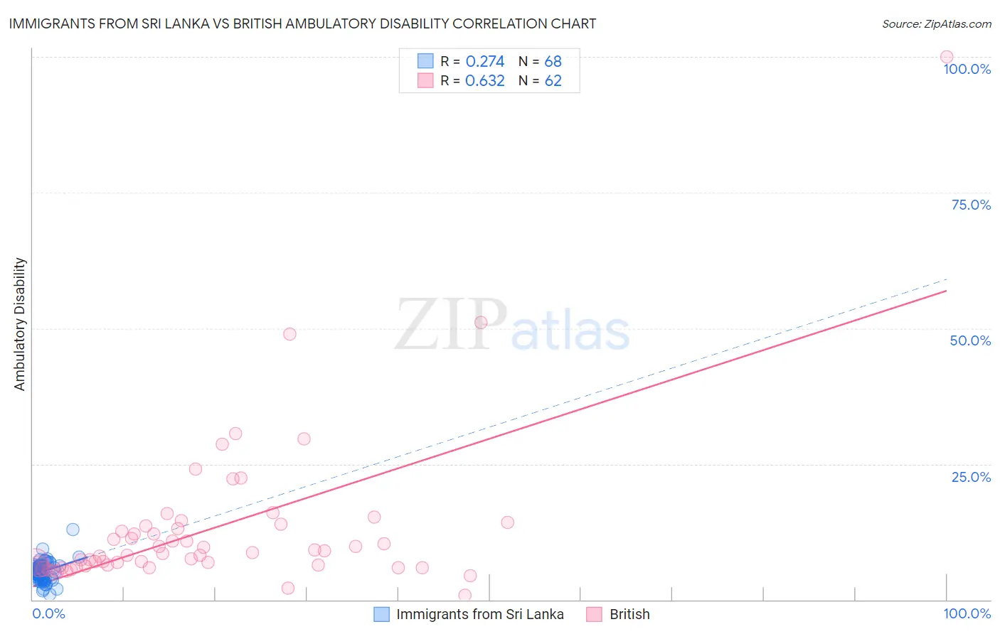 Immigrants from Sri Lanka vs British Ambulatory Disability Correlation Chart