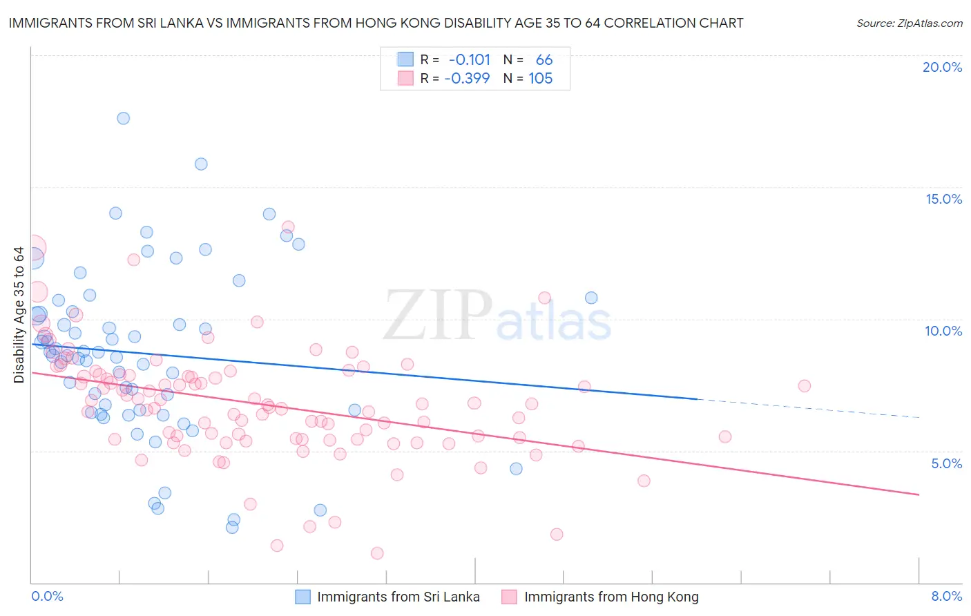Immigrants from Sri Lanka vs Immigrants from Hong Kong Disability Age 35 to 64 Correlation Chart