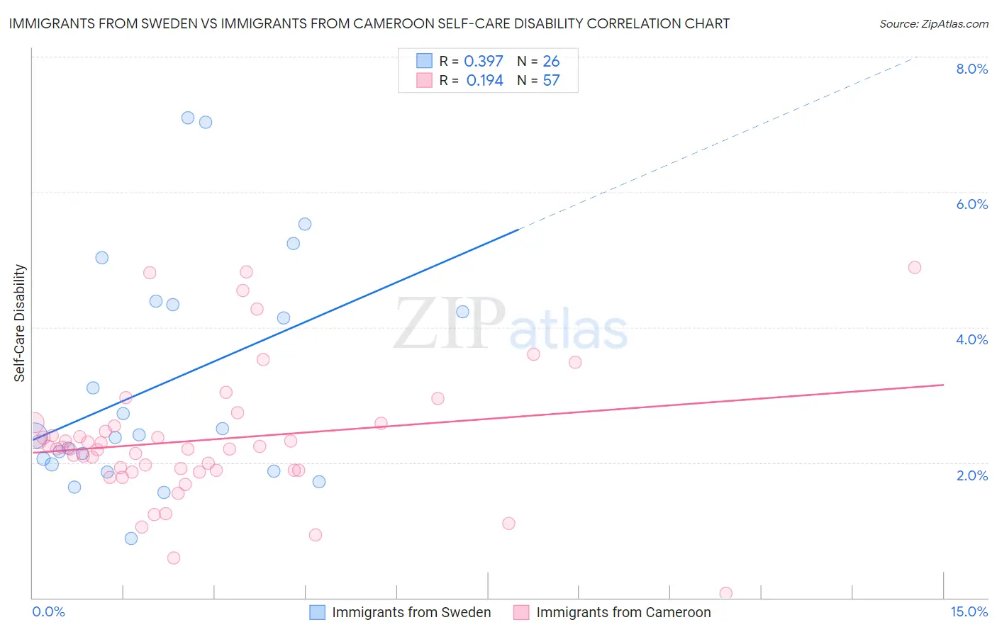 Immigrants from Sweden vs Immigrants from Cameroon Self-Care Disability Correlation Chart