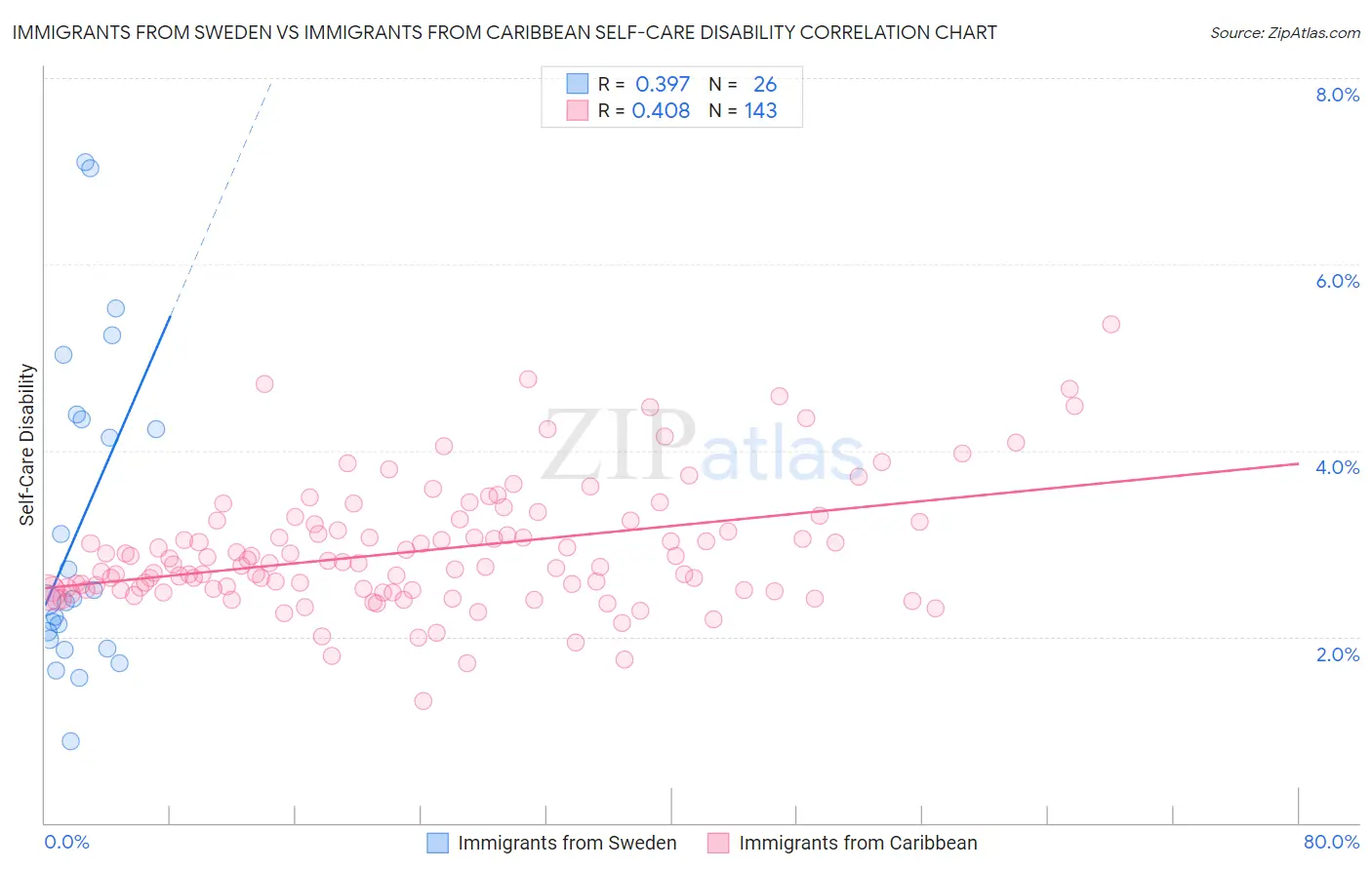 Immigrants from Sweden vs Immigrants from Caribbean Self-Care Disability Correlation Chart