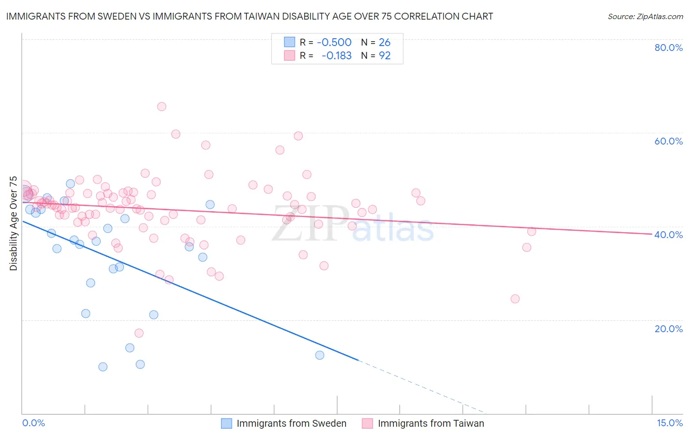 Immigrants from Sweden vs Immigrants from Taiwan Disability Age Over 75 Correlation Chart