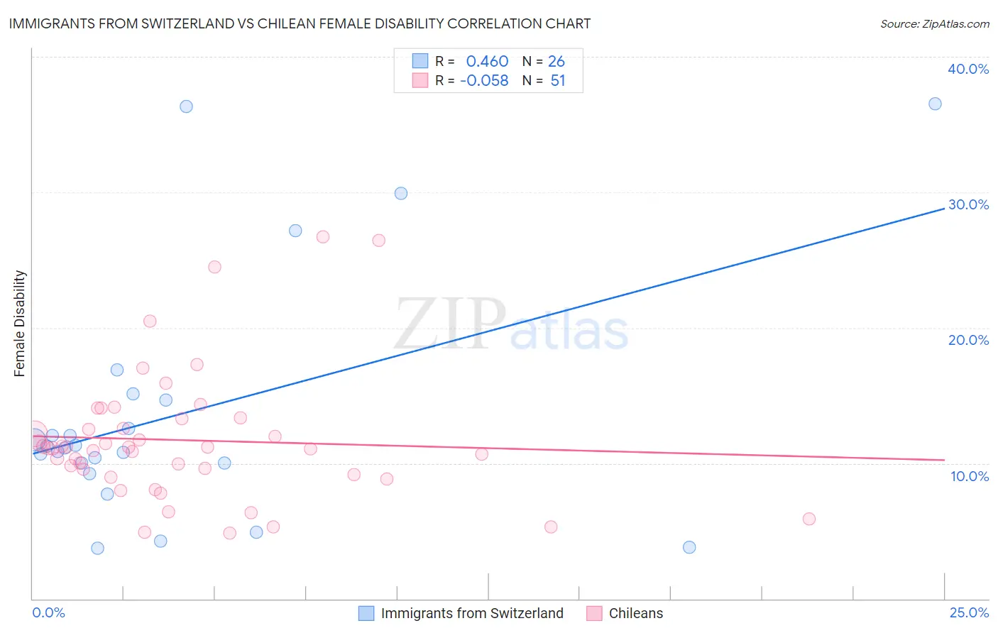 Immigrants from Switzerland vs Chilean Female Disability Correlation Chart