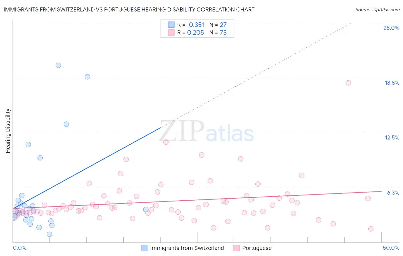 Immigrants from Switzerland vs Portuguese Hearing Disability Correlation Chart