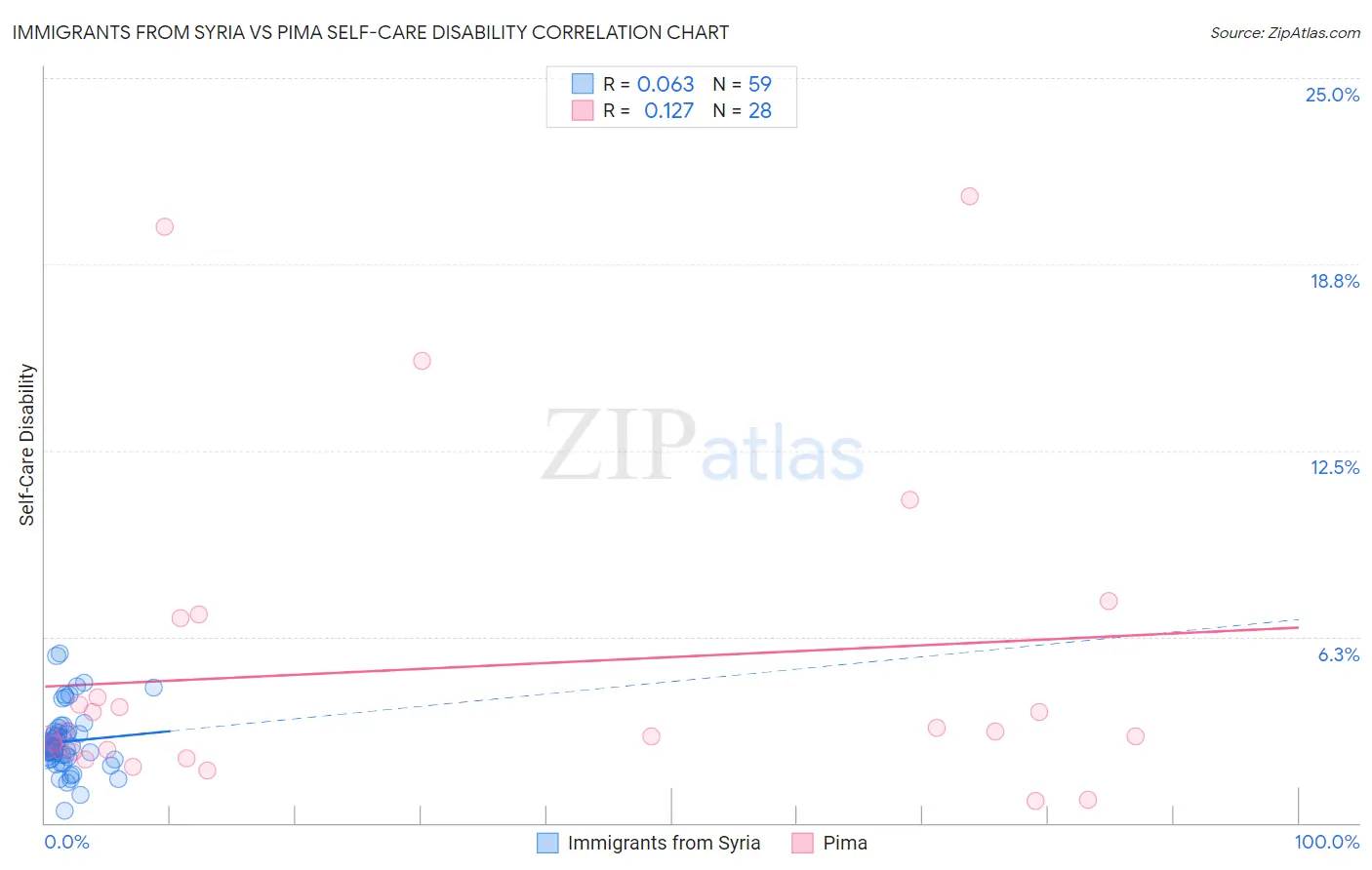 Immigrants from Syria vs Pima Self-Care Disability Correlation Chart