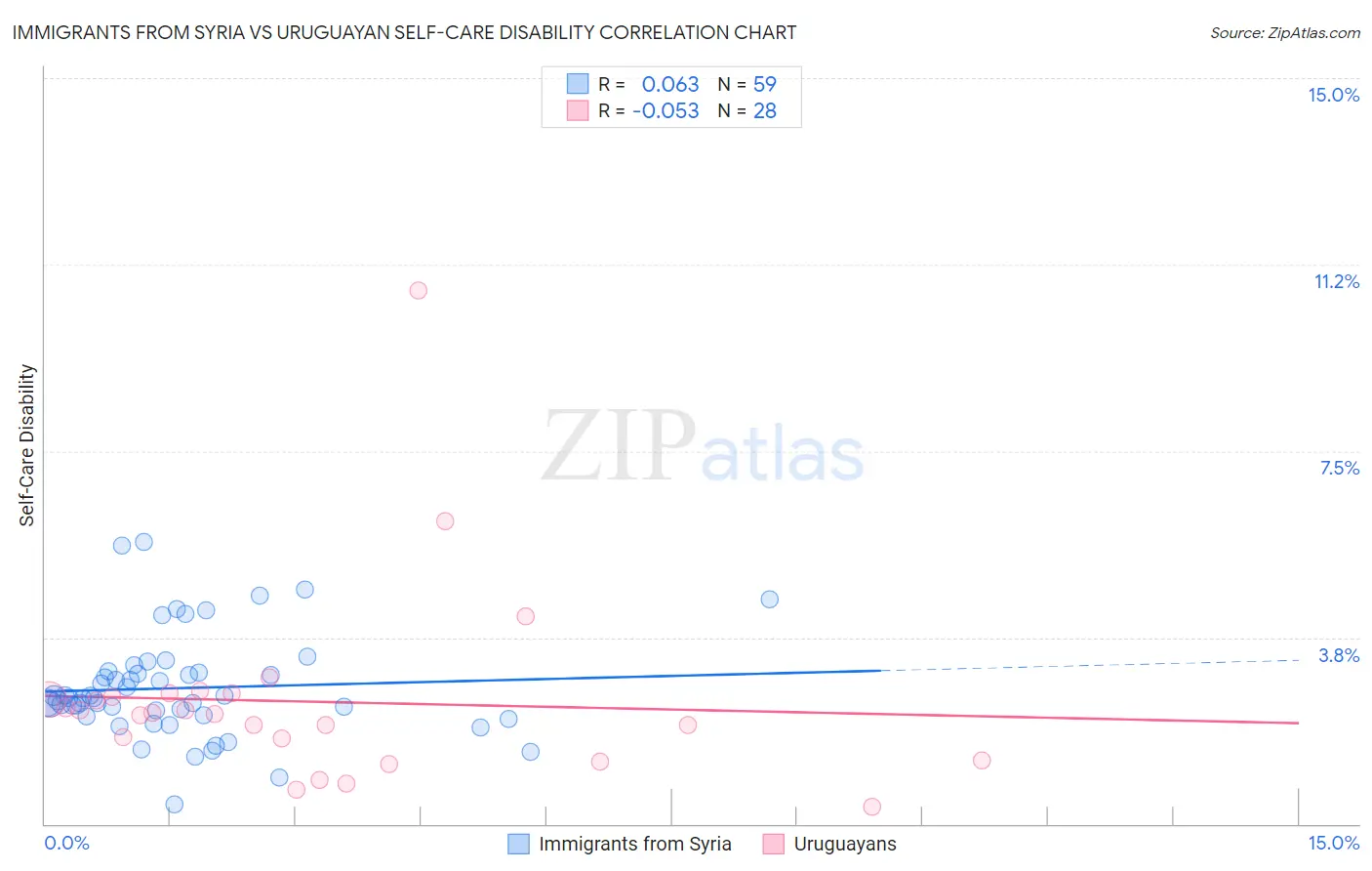 Immigrants from Syria vs Uruguayan Self-Care Disability Correlation Chart
