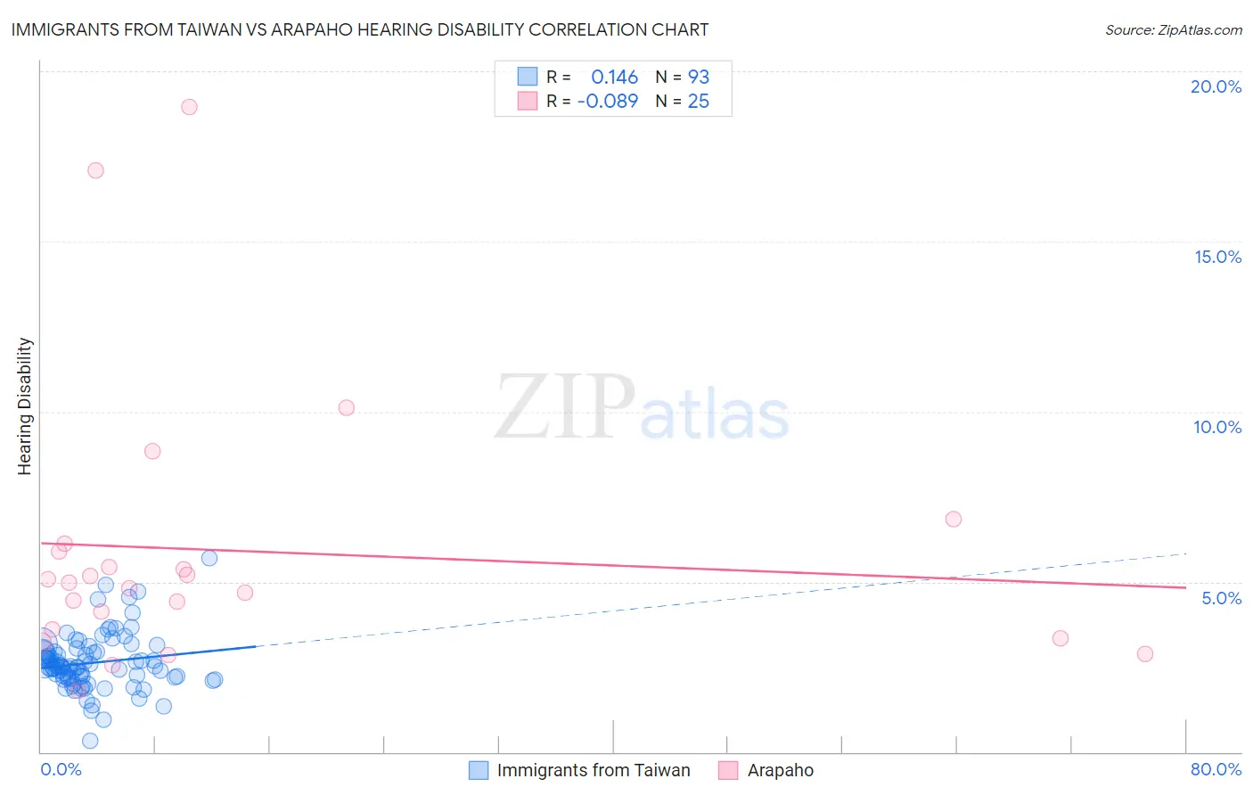 Immigrants from Taiwan vs Arapaho Hearing Disability Correlation Chart