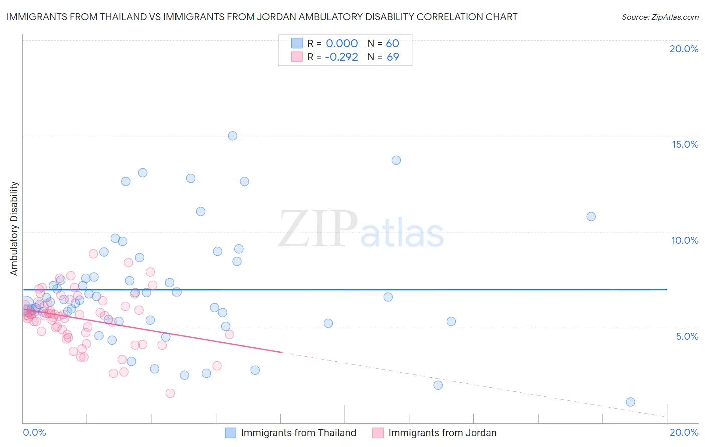 Immigrants from Thailand vs Immigrants from Jordan Ambulatory Disability Correlation Chart