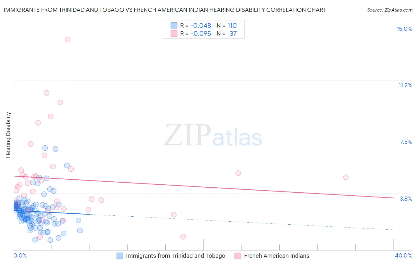 Immigrants from Trinidad and Tobago vs French American Indian Hearing Disability Correlation Chart