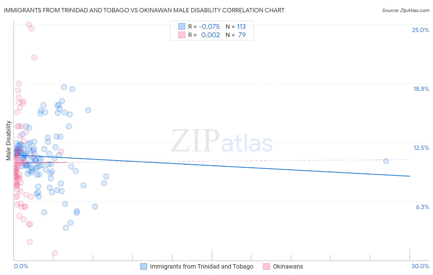 Immigrants from Trinidad and Tobago vs Okinawan Male Disability Correlation Chart