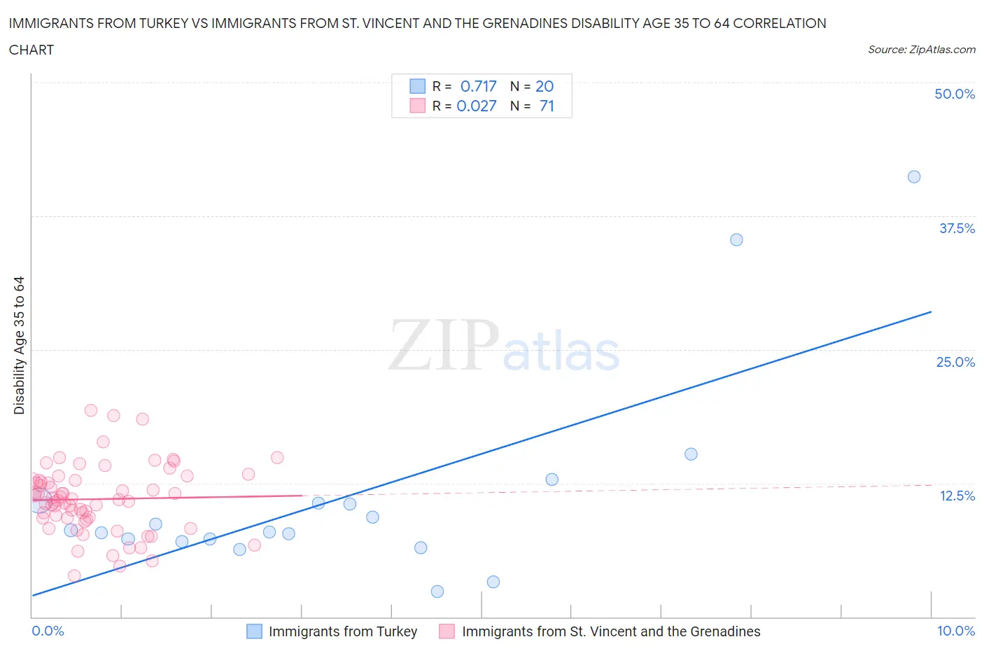 Immigrants from Turkey vs Immigrants from St. Vincent and the Grenadines Disability Age 35 to 64 Correlation Chart